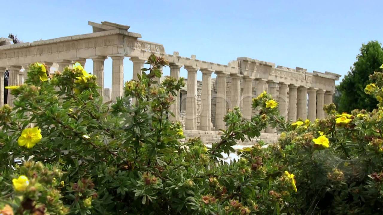 Wallpaper Flowering Shrubs on the background of the Acropolis in Athens