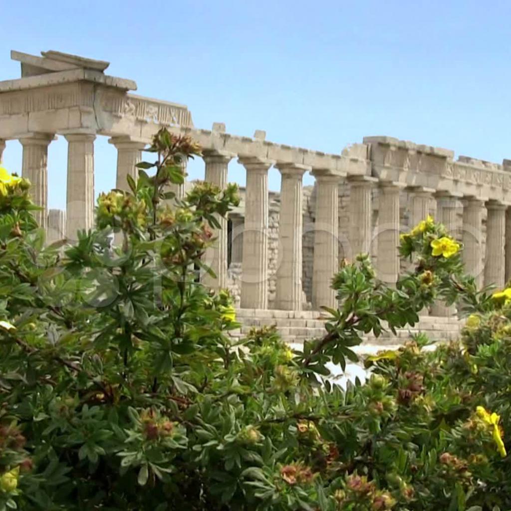 Wallpaper Flowering Shrubs on the background of the Acropolis in Athens