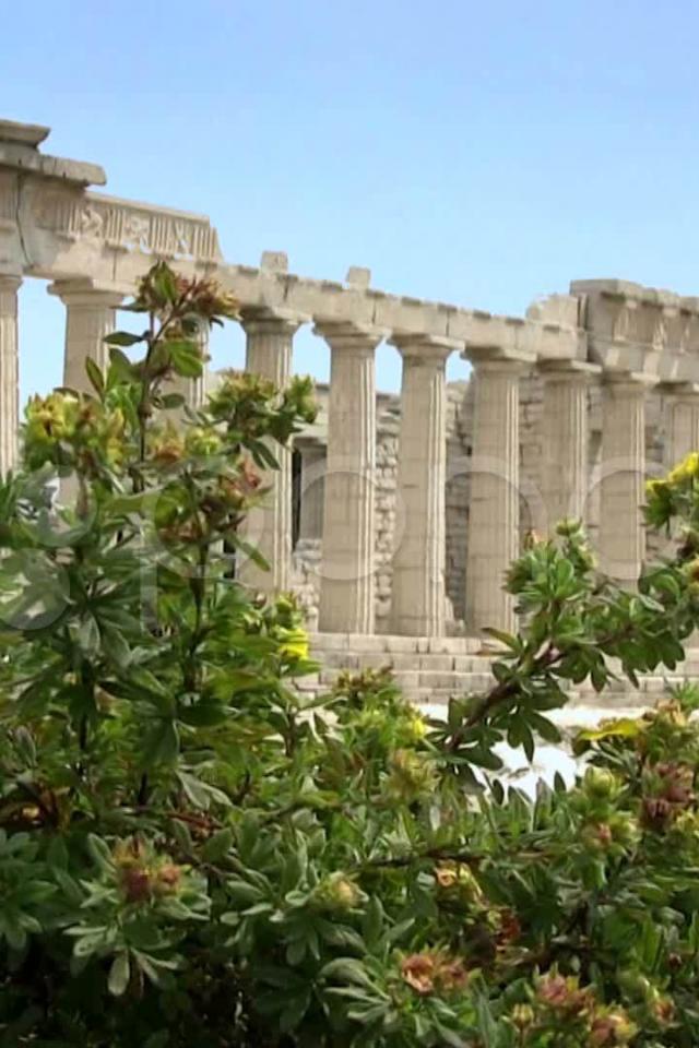 Wallpaper Flowering Shrubs on the background of the Acropolis in Athens