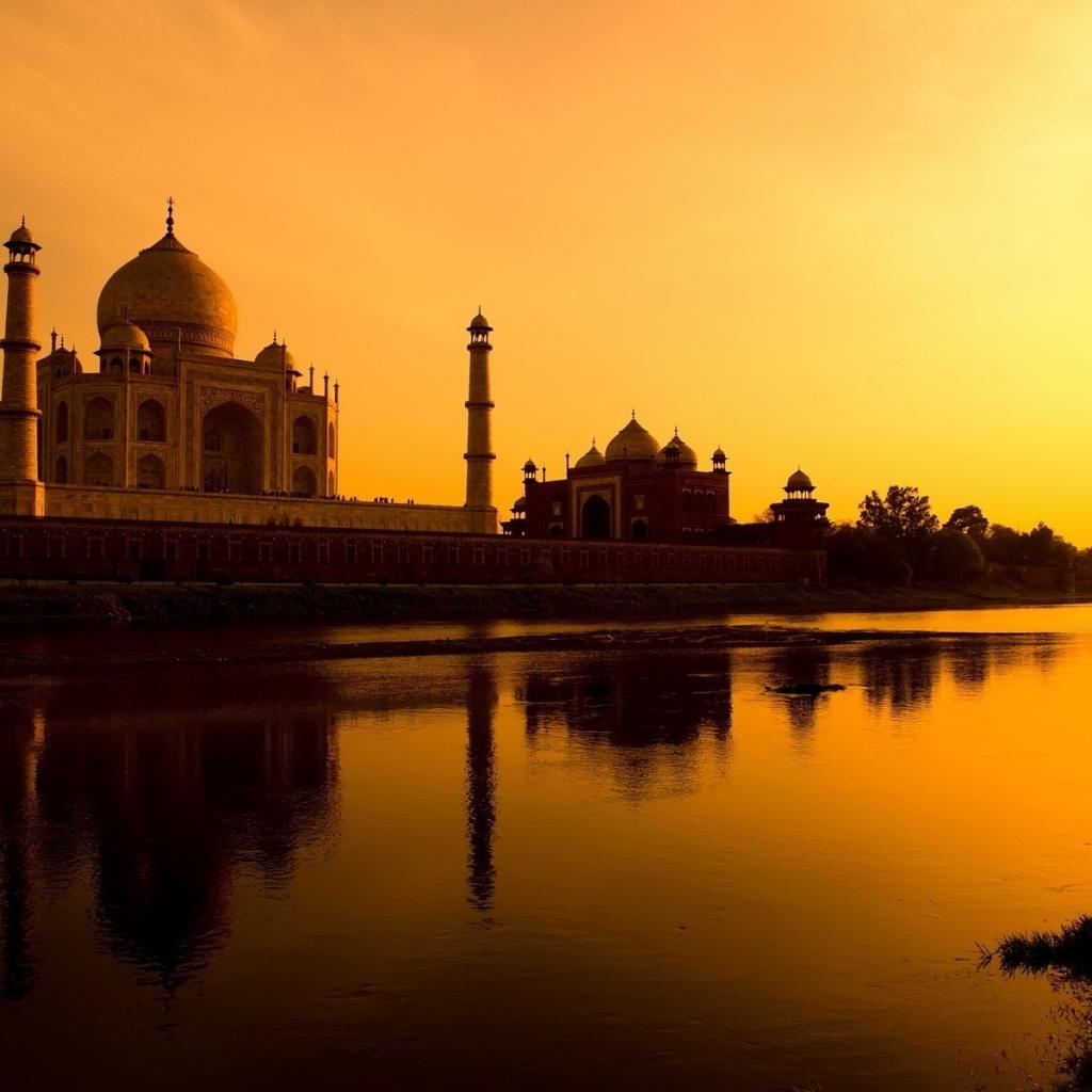 Wallpaper River at the foot of the Taj Mahal at sunset