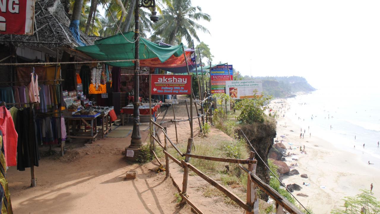 Wallpaper Stalls selling goods to tourists in Varkala