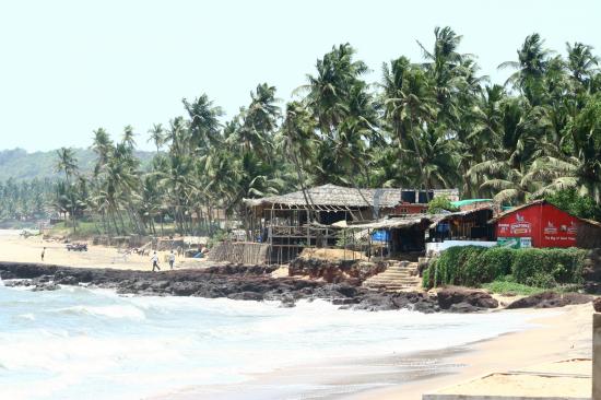 Wallpaper Cow on the background of the tourists on the beach in Anjuna