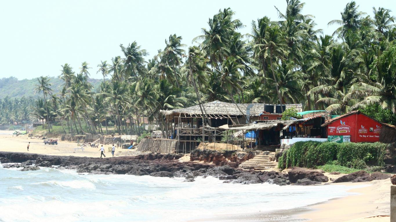 Wallpaper Cow on the background of the tourists on the beach in Anjuna