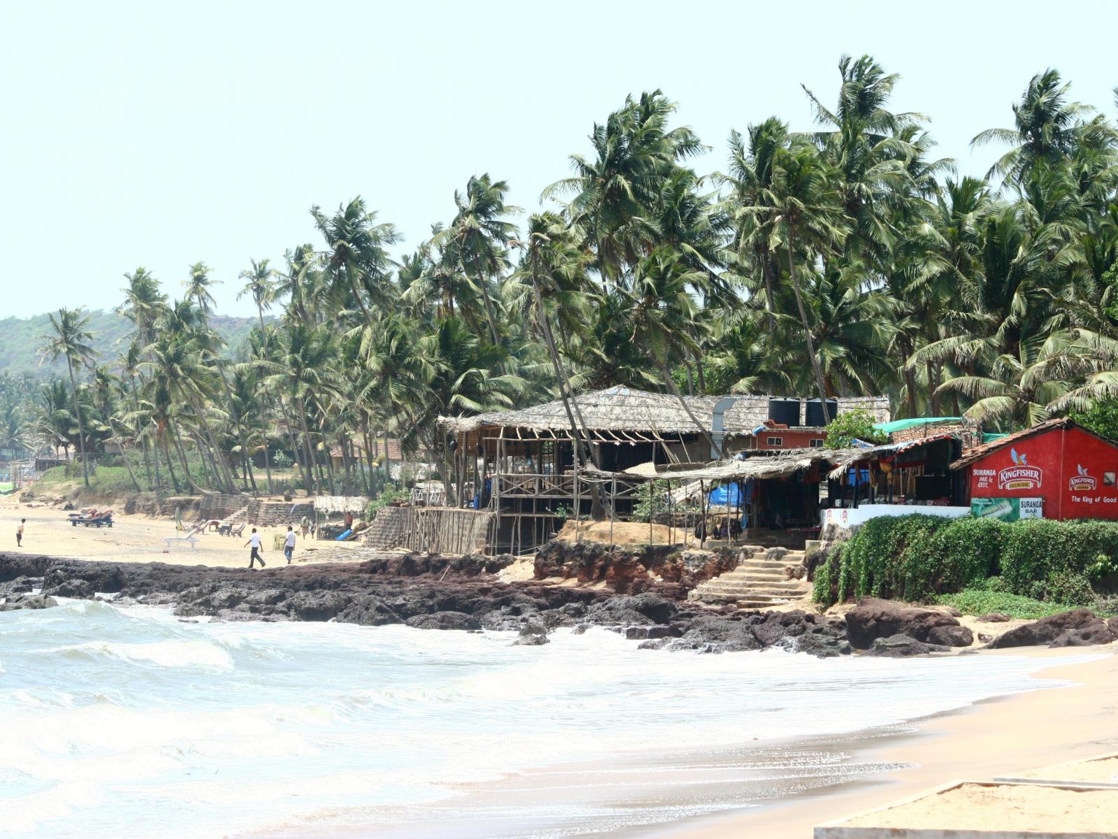 Wallpaper Cow on the background of the tourists on the beach in Anjuna