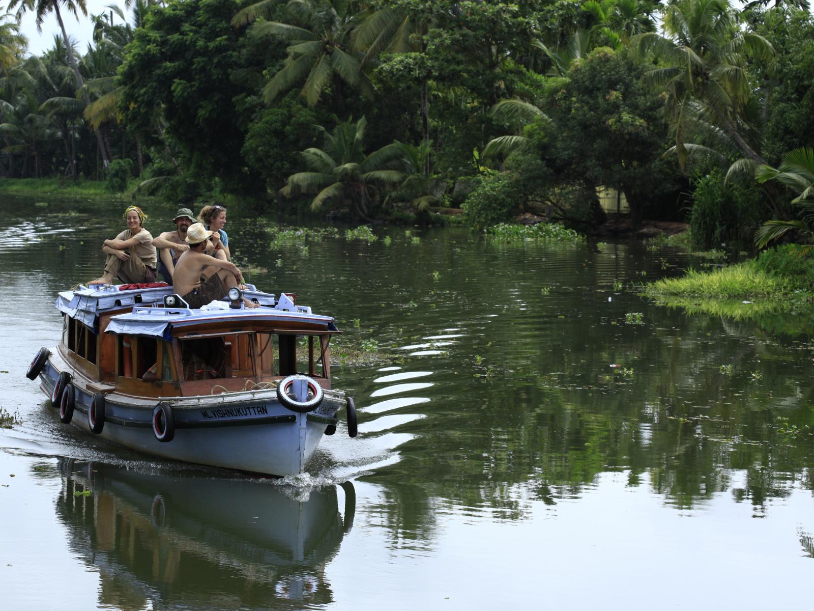 Wallpaper Tourists on a boat in Alapuzha