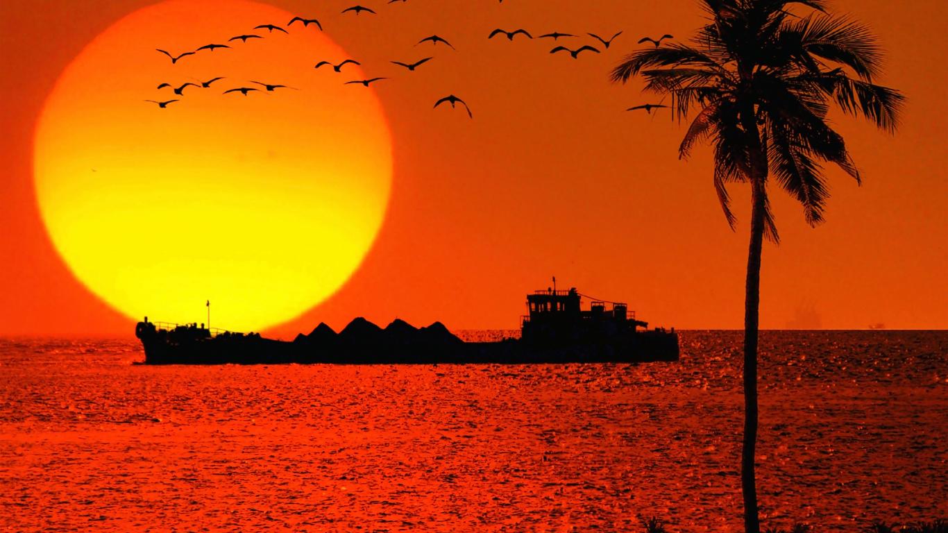 Wallpaper Red Alfa Romeo 4C on the background of the ship