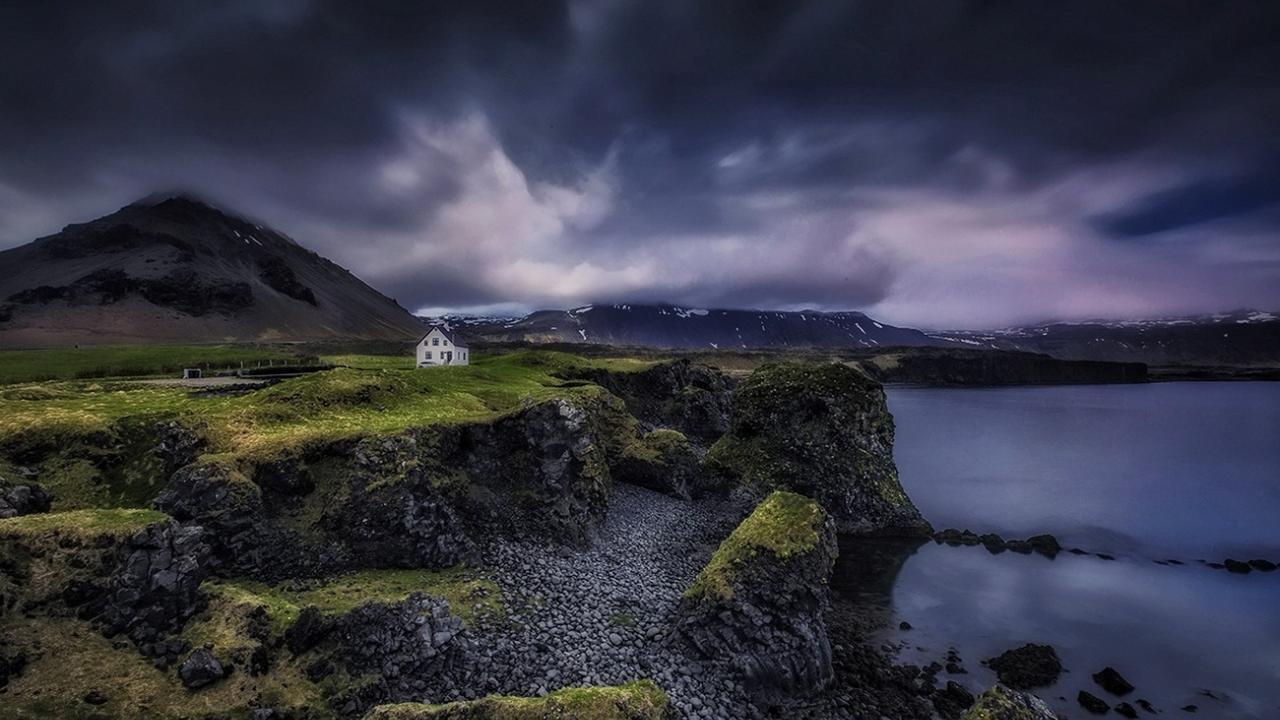 Wallpaper The small house on a steep bank, Iceland
