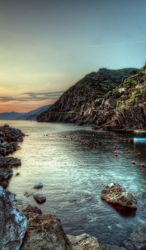 Wallpaper Seashore at sunset, the resort Cinque Terre in Italy