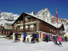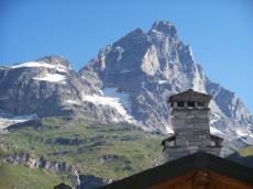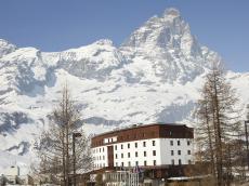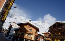 Wallpaper City on a background of mountains in the ski resort of Cervinia, Italy