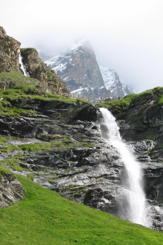 Wallpaper Waterfall in the ski resort of Cervinia, Italy