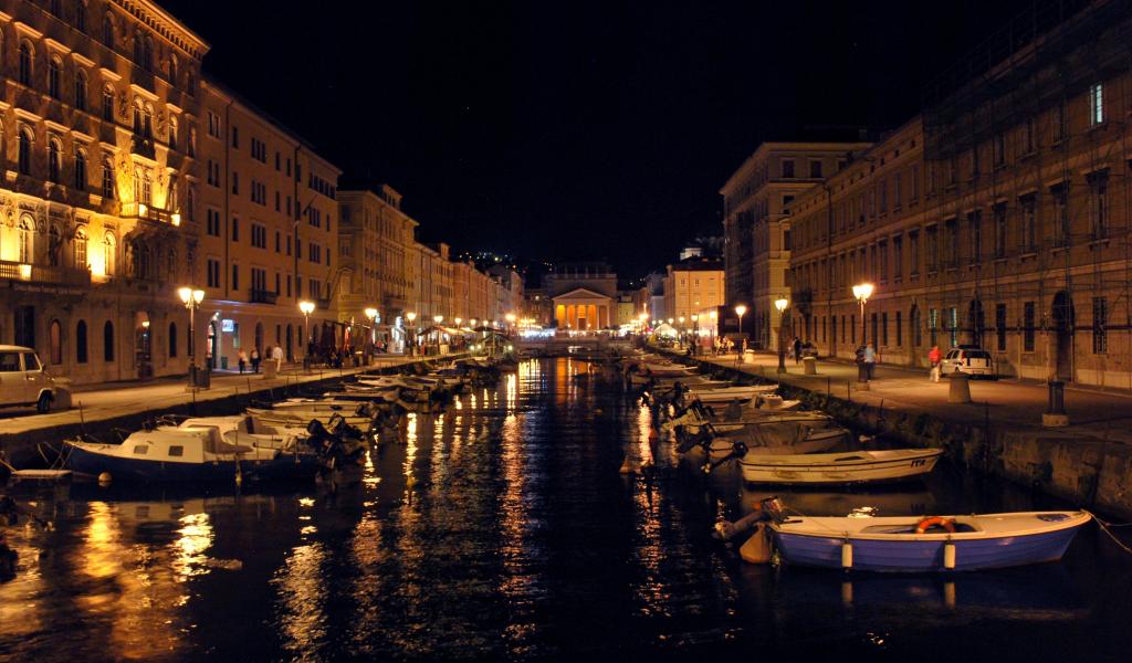 Wallpaper Night lights of the channel at a resort in Trieste, Italy