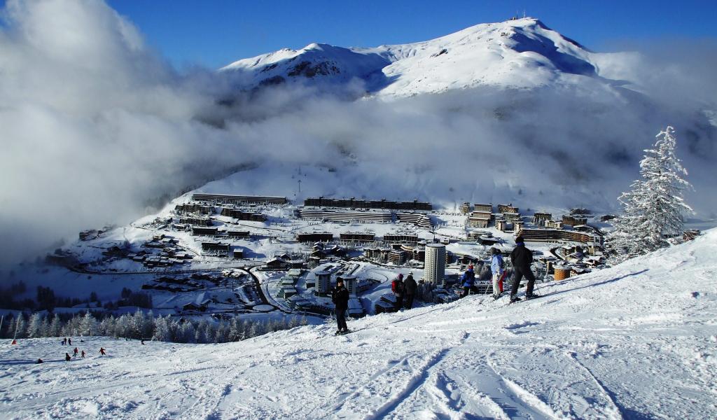 Wallpaper Fog over the city at the ski resort Sestriere, Italy