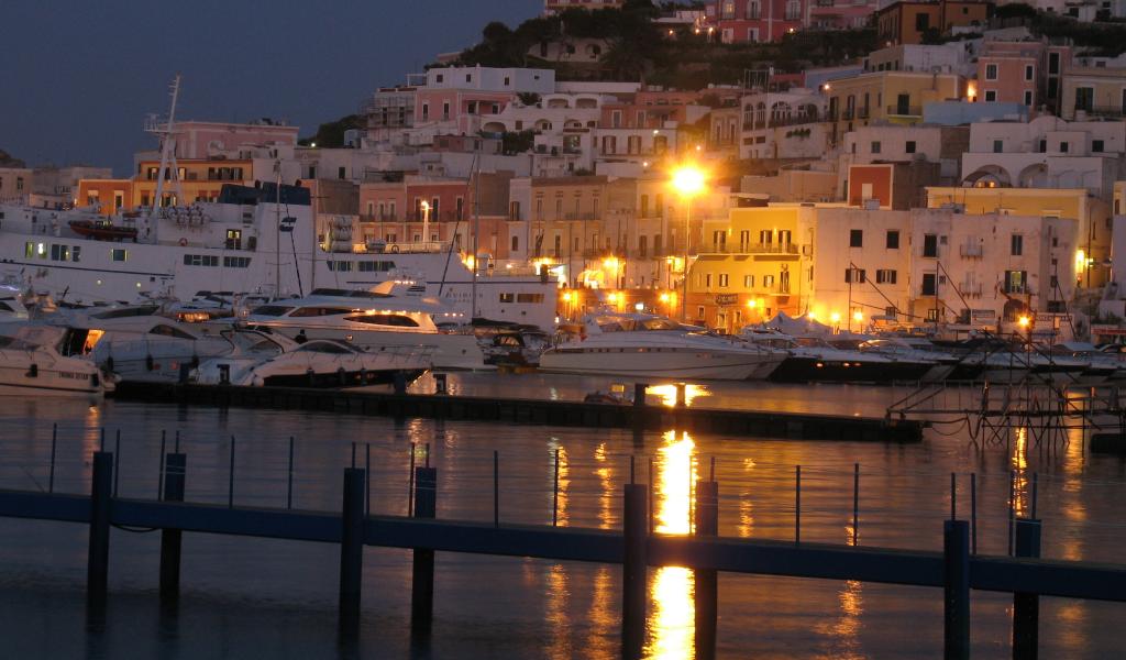 Wallpaper Night at the port on the island of Ponza, Italy