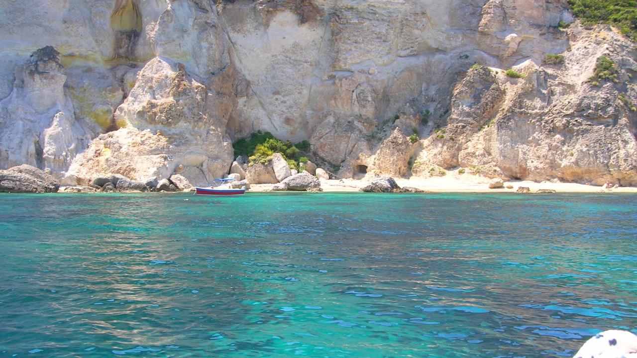 Wallpaper Boat on the background of rocks on the island of Ponza, Italy
