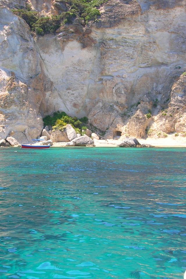 Wallpaper Boat on the background of rocks on the island of Ponza, Italy