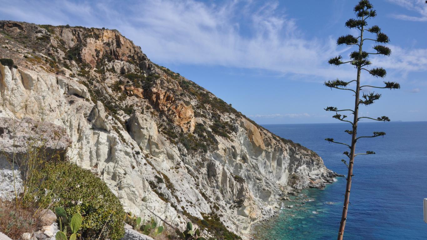 Wallpaper Tree against the rocks on the island of Ponza, Italy
