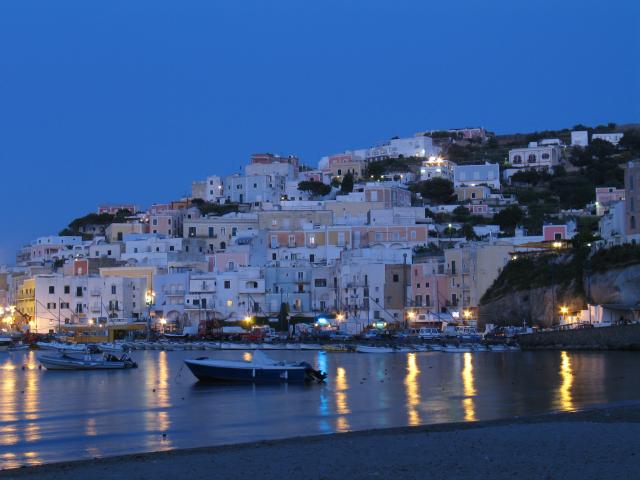 Wallpaper Evening lights at the beach on the island of Ponza, Italy
