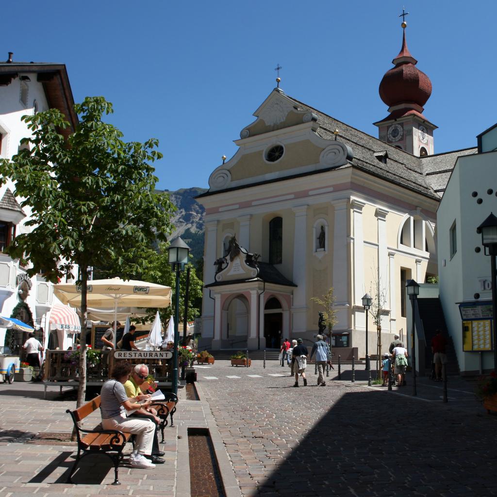 Wallpaper Church on a background of mountains in Ortisei, Italy