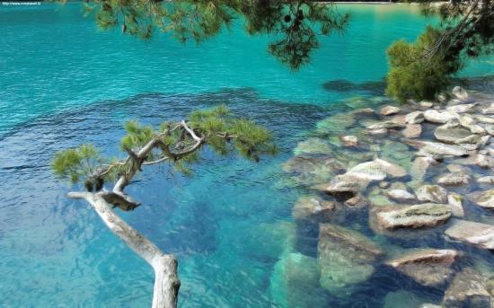 Wallpaper Trees over the sea in Liguria, Italy