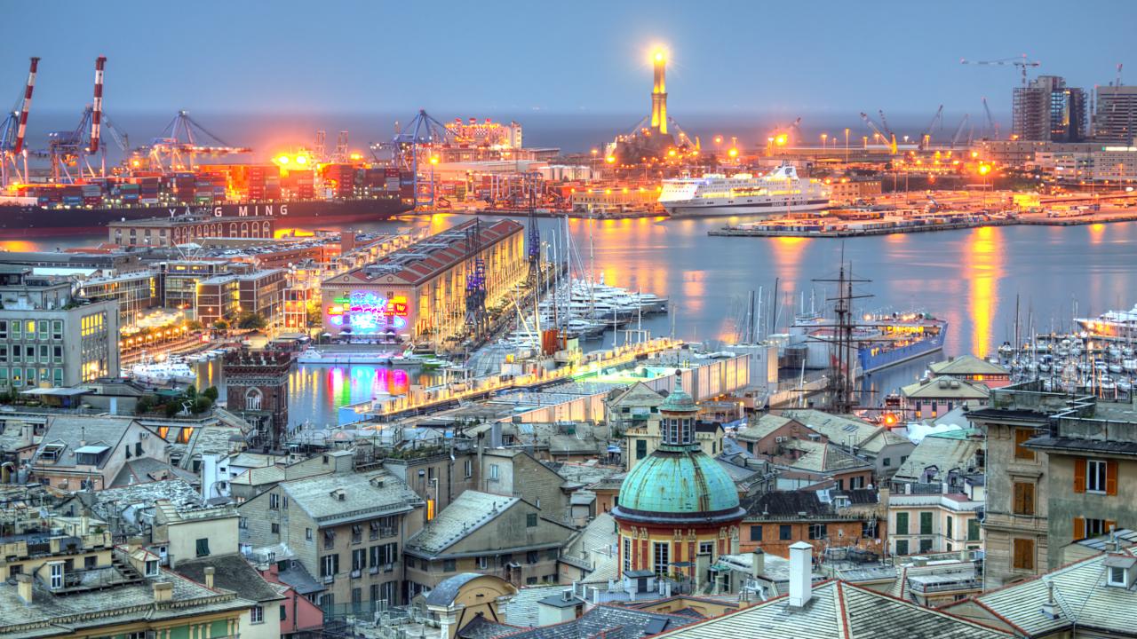 Wallpaper Panorama of the port of Genoa, Italy