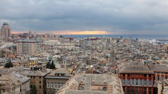 Wallpaper Sunset over the city of Genoa, Italy