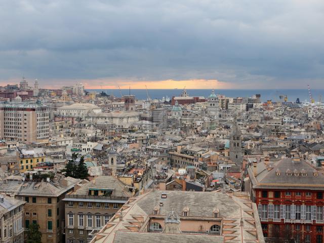 Wallpaper Sunset over the city of Genoa, Italy