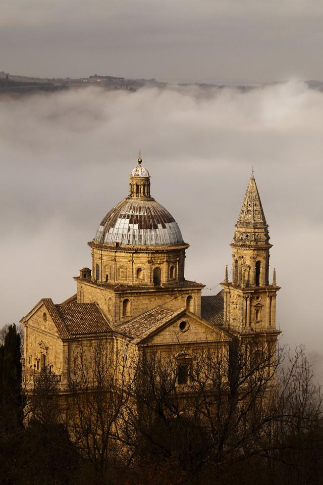 Wallpaper Cathedral on the background fog in Siena, Italy