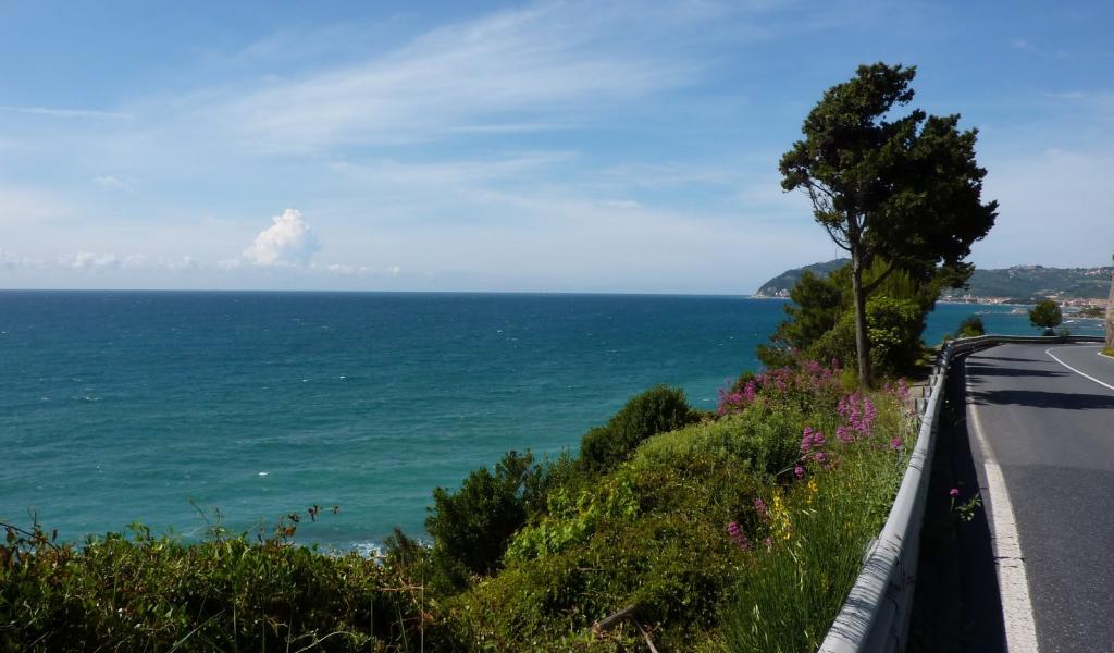 Wallpaper Trees on the seafront in Santo Stefano al Mare, Italy