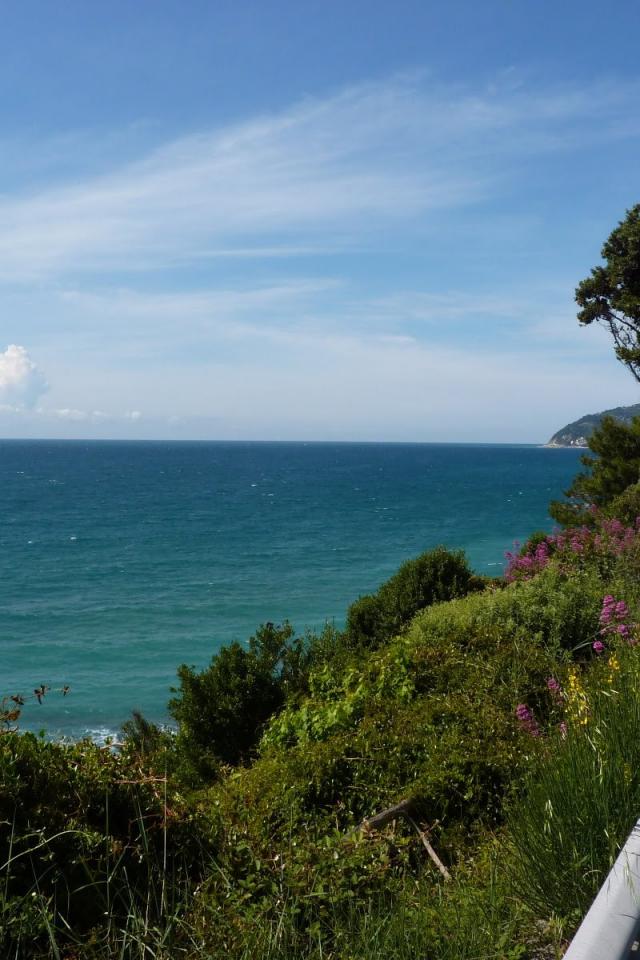 Wallpaper Trees on the seafront in Santo Stefano al Mare, Italy