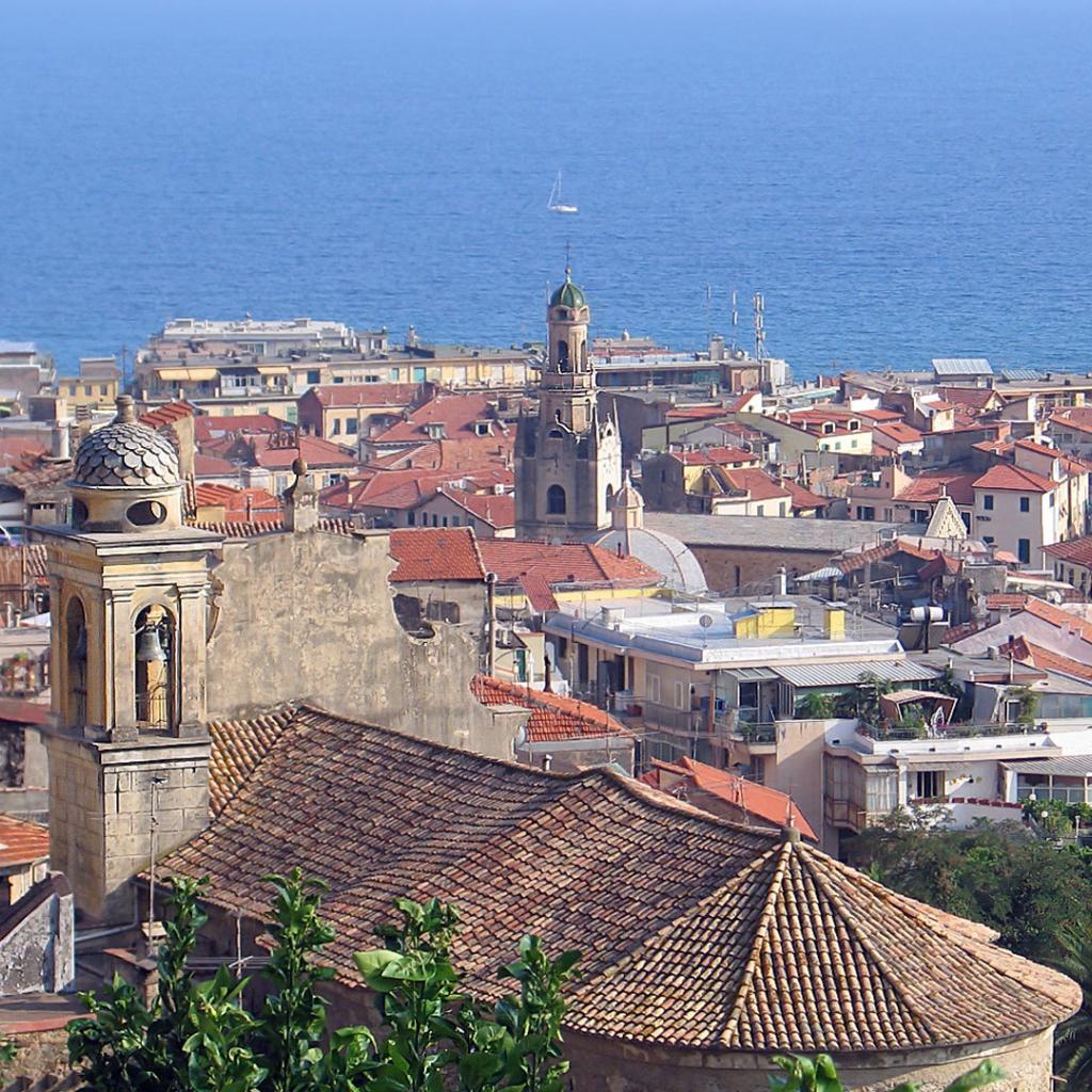 Wallpaper City against the sea in San Remo, Italy