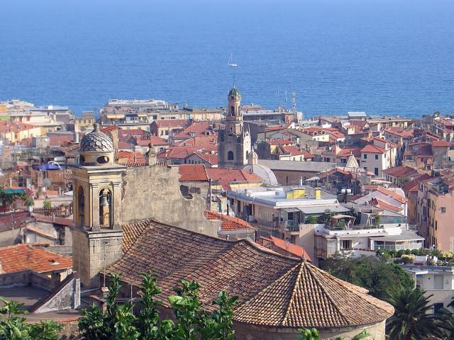 Wallpaper City against the sea in San Remo, Italy