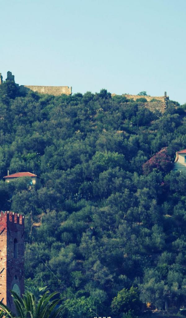 Wallpaper Fortress on the mountain at the resort Noli, Italy