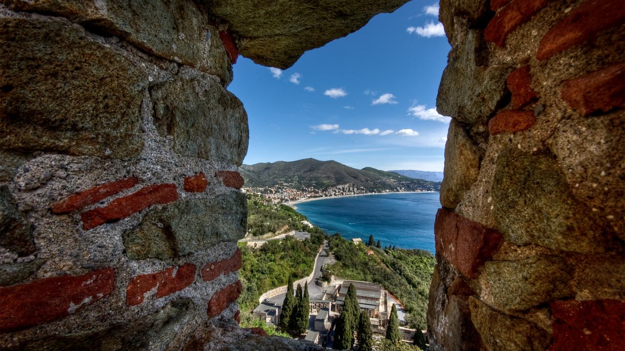 Wallpaper View through the window slits in the resort Noli, Italy