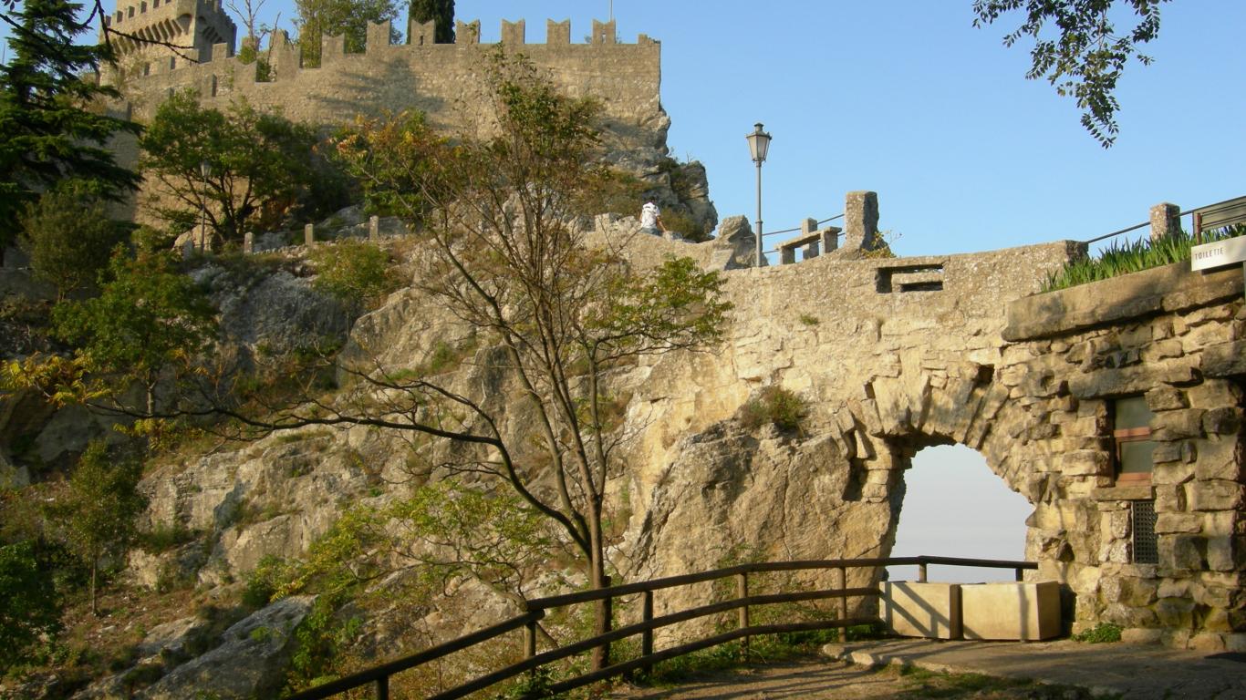 Wallpaper Trees on the background of the fortress of San Marino, Italy