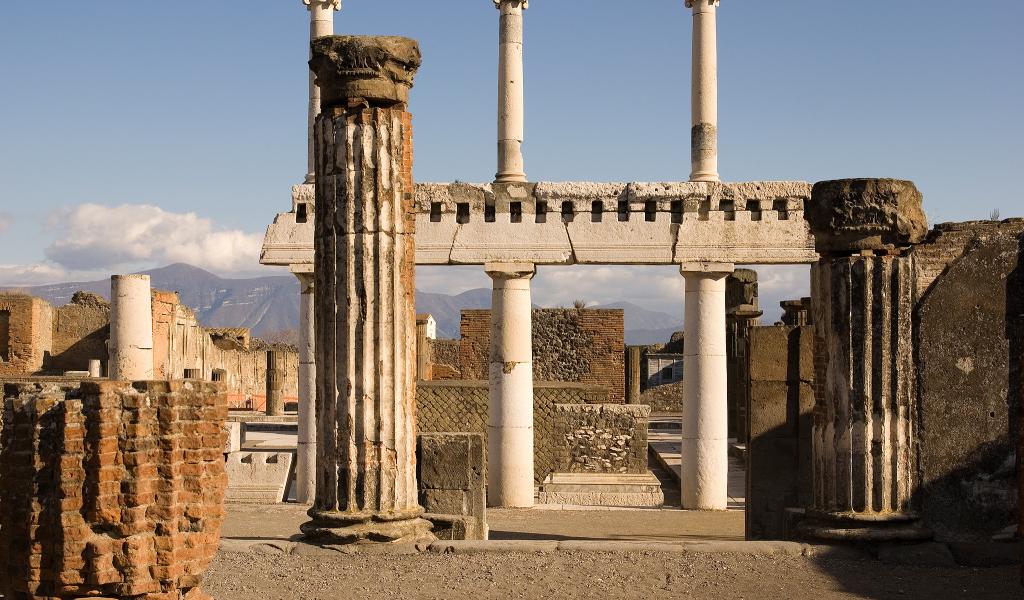 Wallpaper The ruins of Pompeii on a background of mountains, Italy