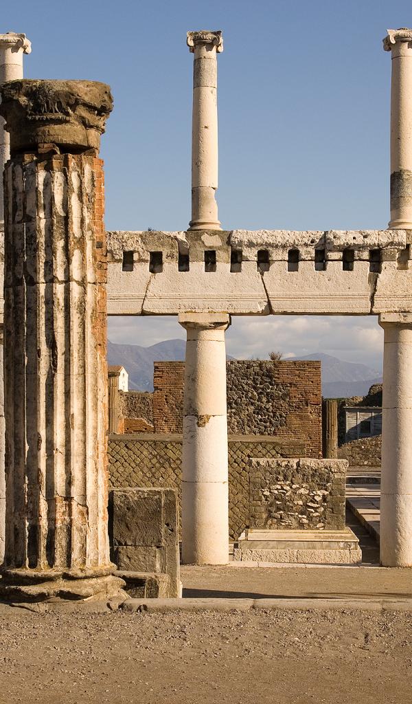 Wallpaper The ruins of Pompeii on a background of mountains, Italy