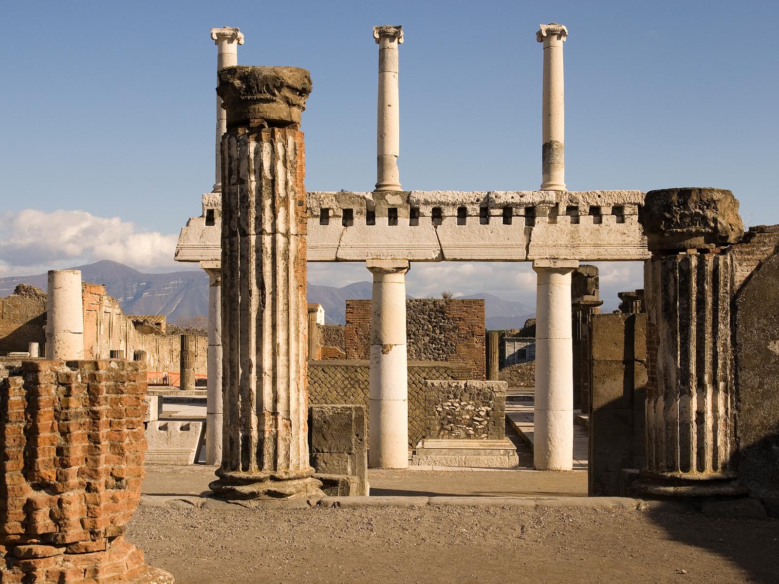 Wallpaper The ruins of Pompeii on a background of mountains, Italy