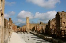 Wallpaper Street on the backdrop of Mount Vesuvius in Pompeii, Italy