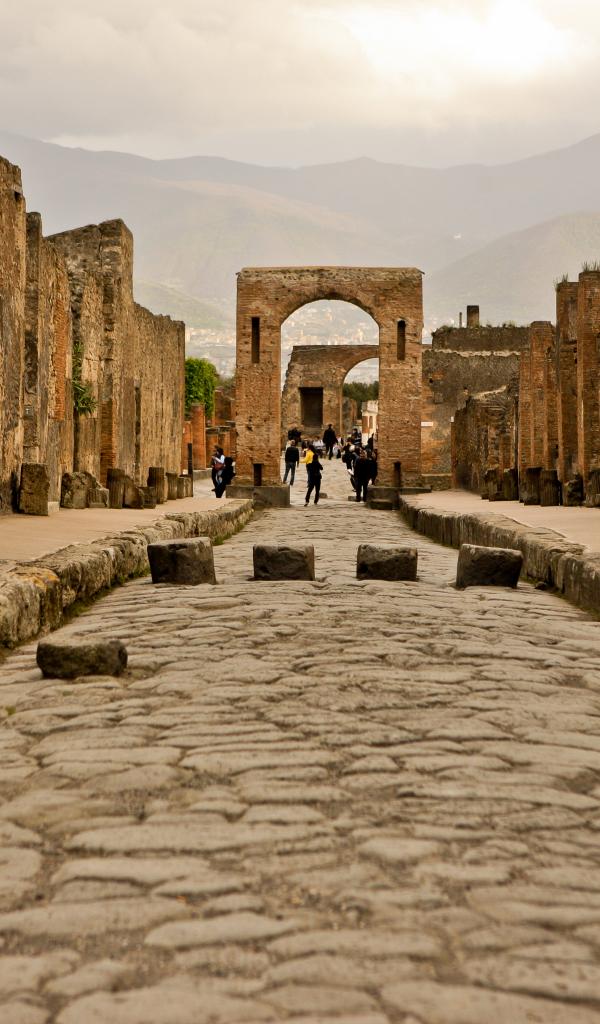Wallpaper Street on the backdrop of Mount Vesuvius in Pompeii, Italy