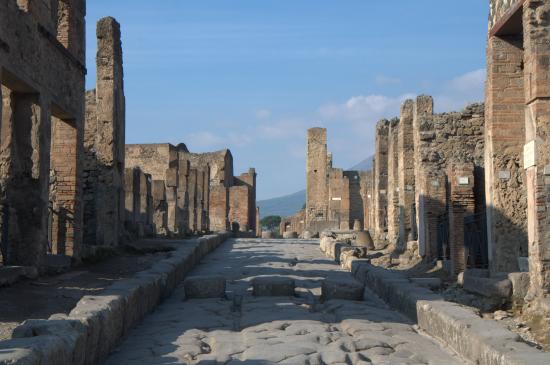 Wallpaper Street on the backdrop of Mount Vesuvius in Pompeii, Italy