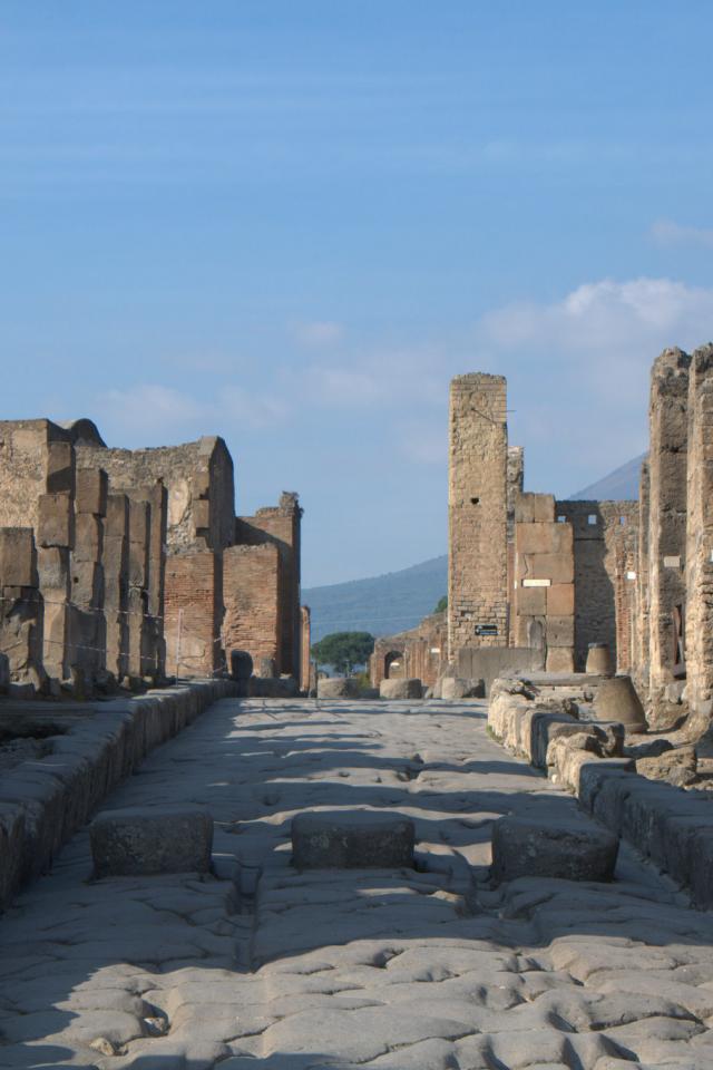 Wallpaper Street on the backdrop of Mount Vesuvius in Pompeii, Italy