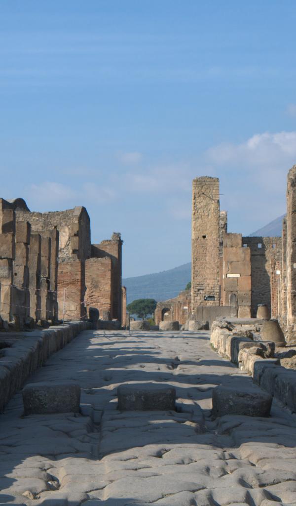 Wallpaper Street on the backdrop of Mount Vesuvius in Pompeii, Italy