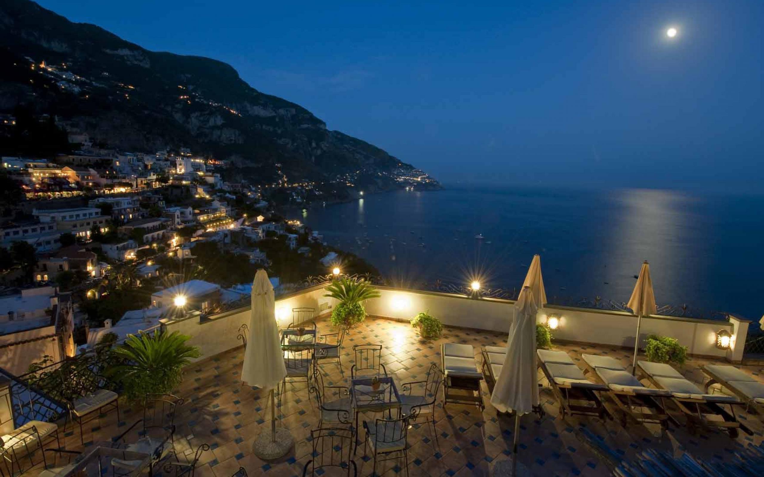 Wallpaper Moon over the bay in the resort of Positano, Italy