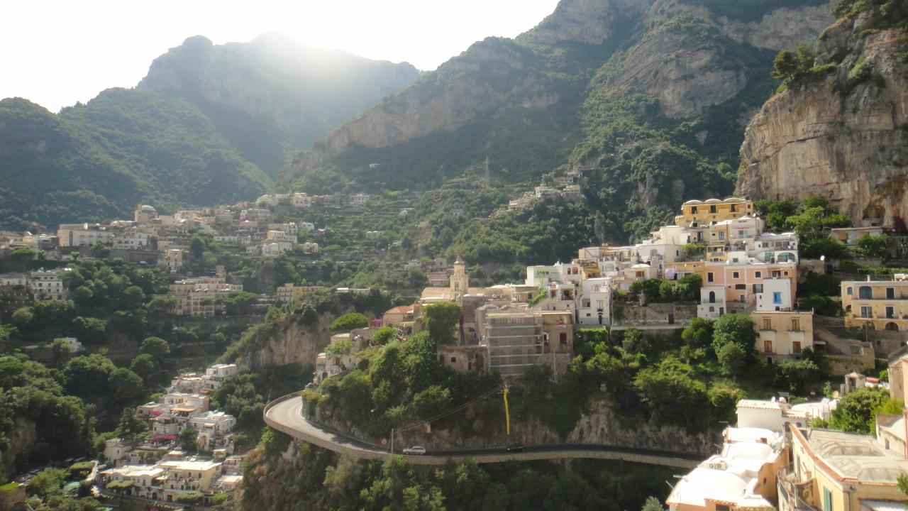 Wallpaper Mountain road in the resort of Positano, Italy