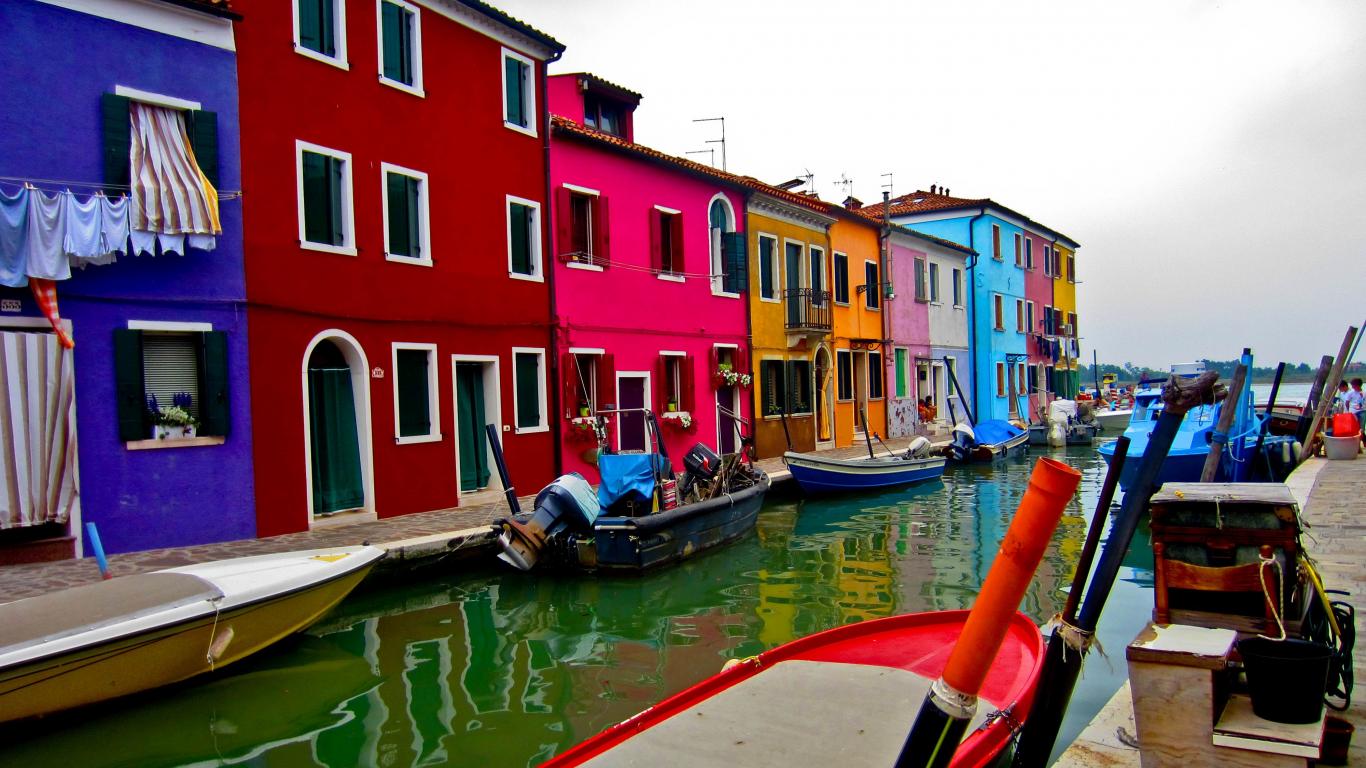Wallpaper Colorful houses on island of Murano, Italy