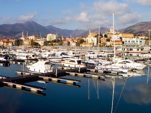 Wallpaper Boats moored in the resort of Imperia, Italy