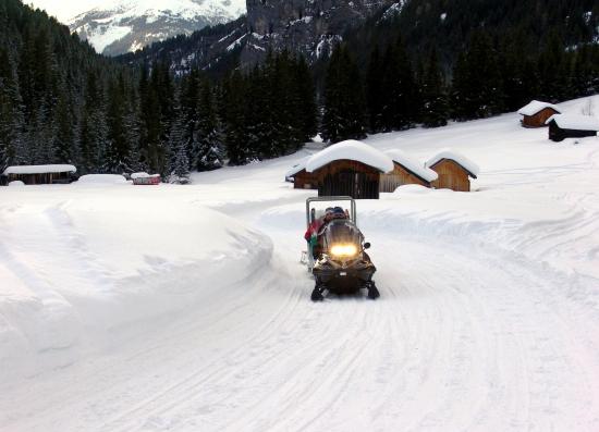 Wallpaper Snowmobiling in the ski resort of Val di Fassa, Italy
