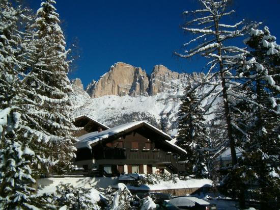 Wallpaper Hotel among the pines in the ski resort of Val di Fassa, Italy