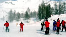 Wallpaper Snowmobiling in the ski resort of Val di Fassa, Italy