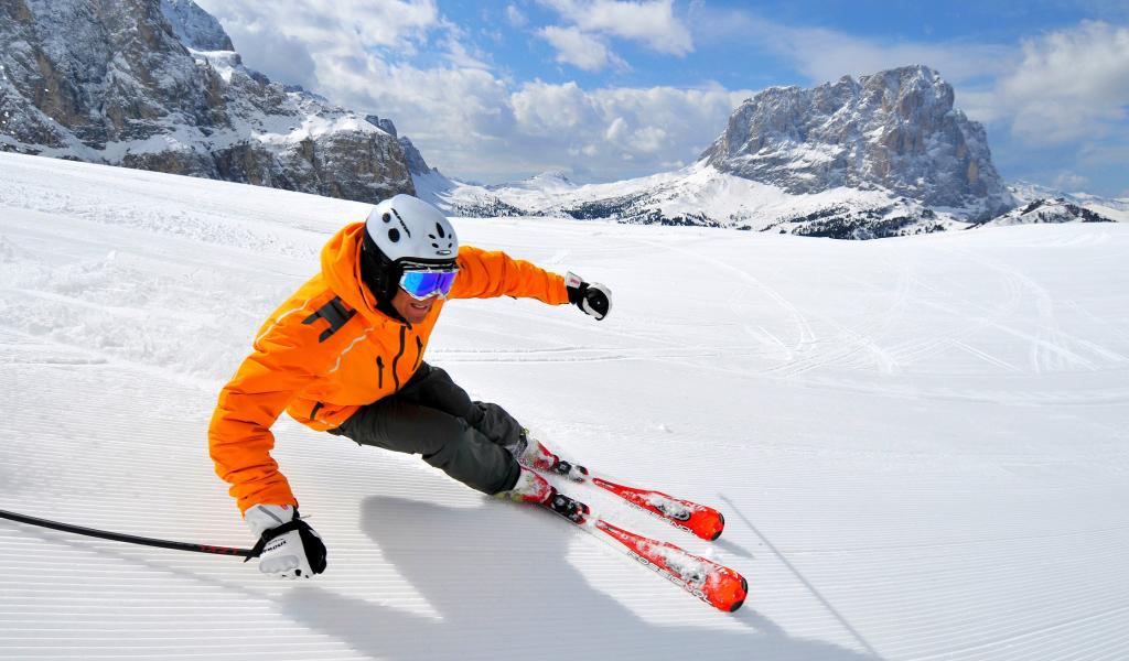 Wallpaper Downhill skiing in the ski resort of Val Gardena, Italy